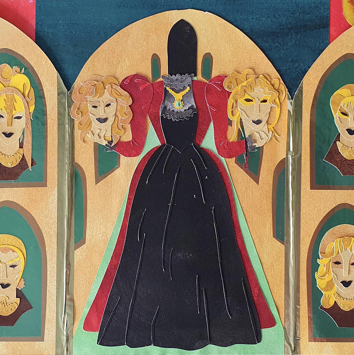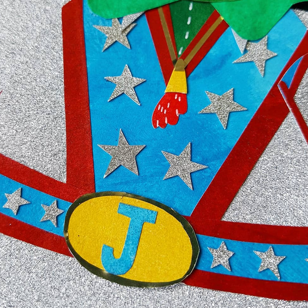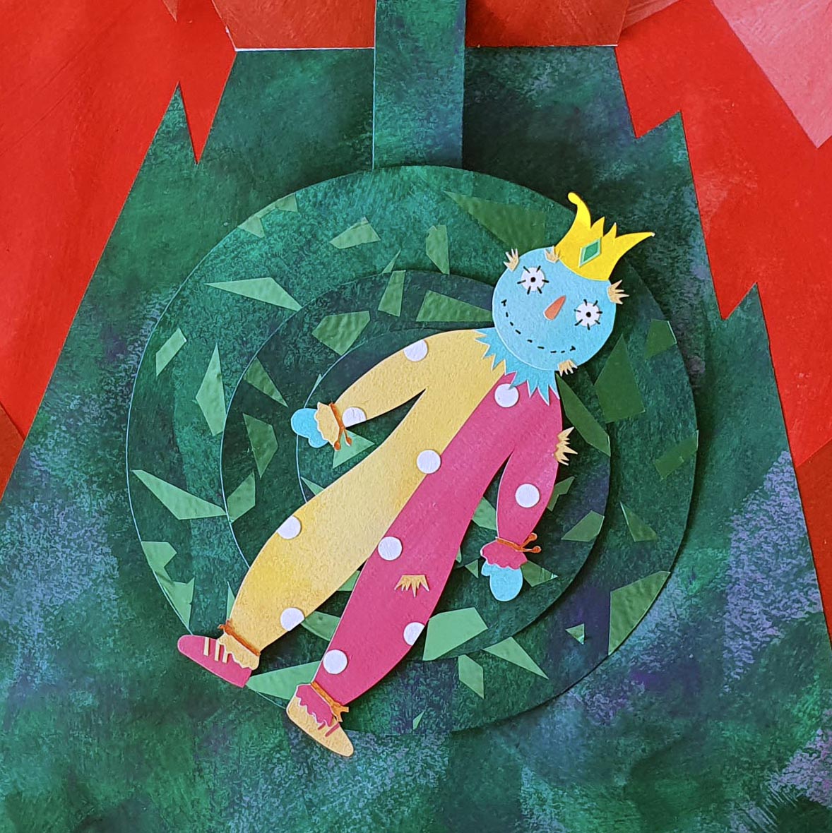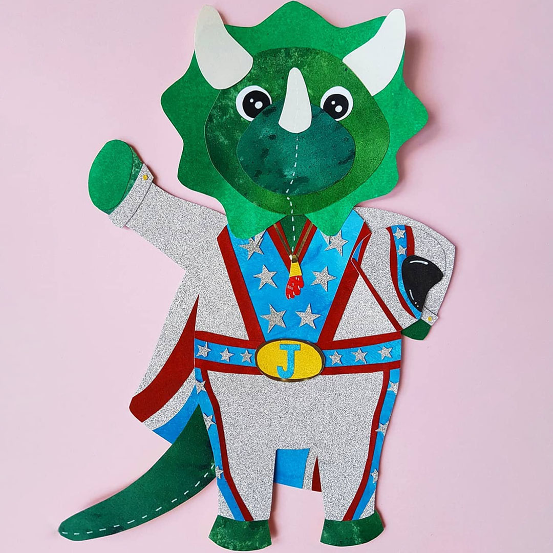 Paper and card are hand painted before being hand cut and glued to form intricate and stylised illustrations.
