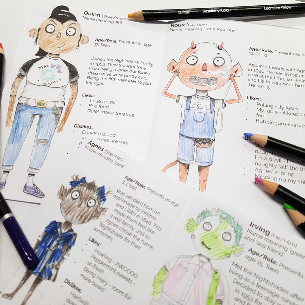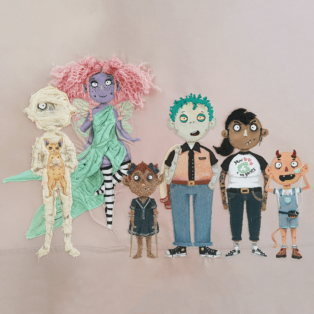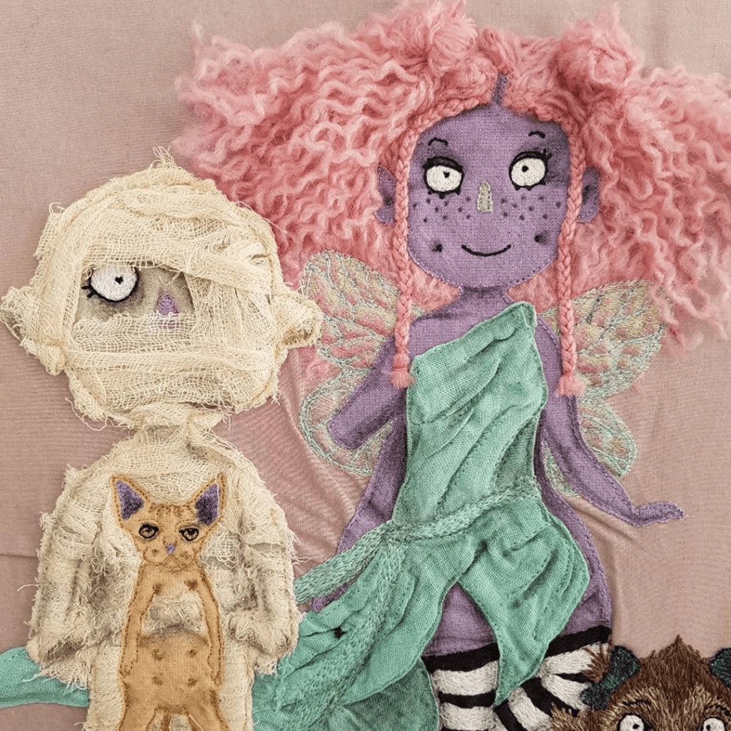 Using textiles and embroidery to document the tales of The Nightshade Family, intended to create a community quilt with story patches built up by children. A DIY zine helps the participants get to know each family member, design a family crest and begin the consider what stories the characters might have to tell!