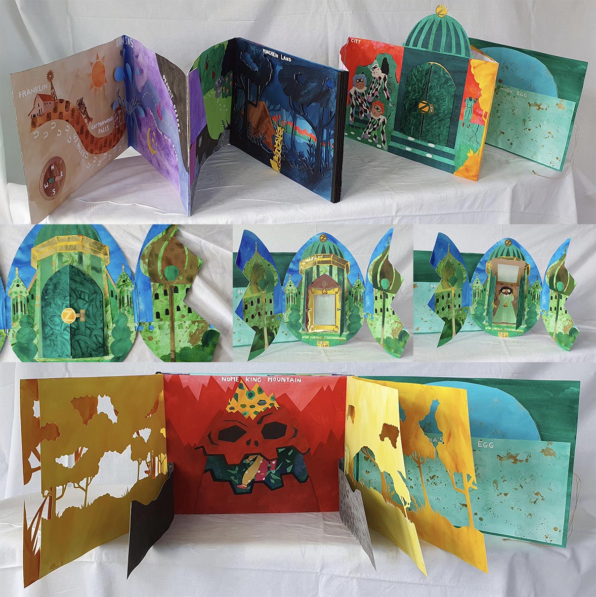 Hand painted and hand cut illustrations put together during my MA to create a richly interactive one of a kind book. The brief called for a map and I took inspiration from a favourite film, reimagining the characters and places to map out Dorothy’s journey back through OZ.
