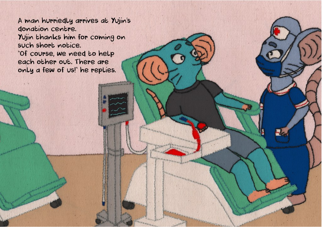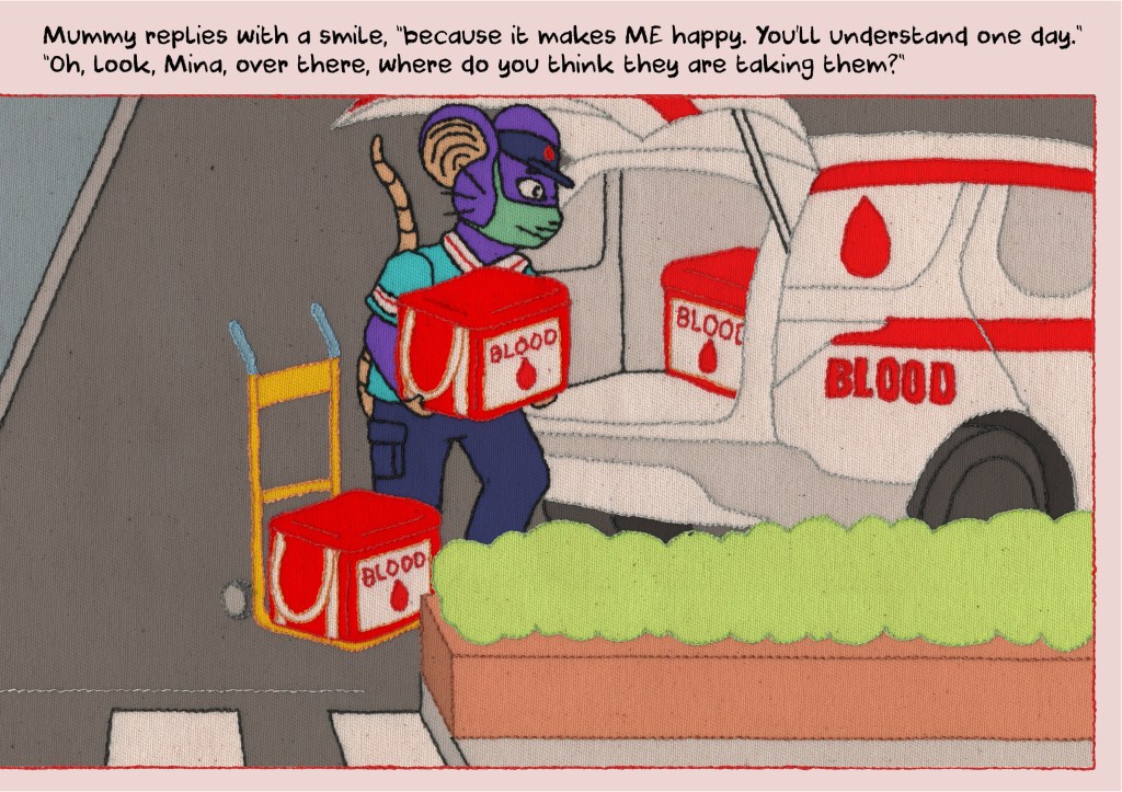 Working alongside University of Leeds researcher Dr Jieun Kim, we developed a children’s picture book about blood donation. Written by Jini based on her research, we worked together to develop character concepts, colour palettes and environments that would engage children in learning about what happens to blood when it is given and received (and everything in between).