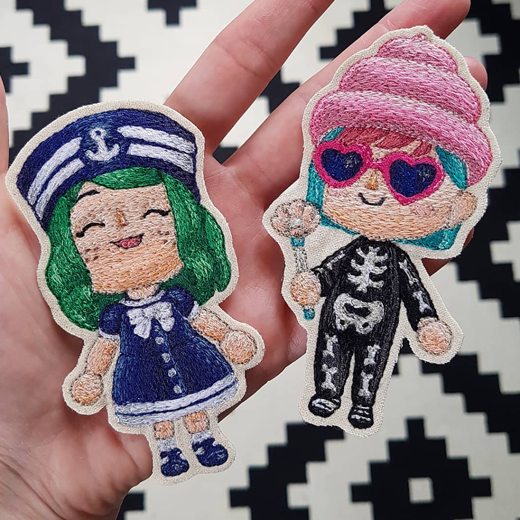 Freehand machine embroidery of characters from TV, Film and Computer games made as gifts for friends and family.