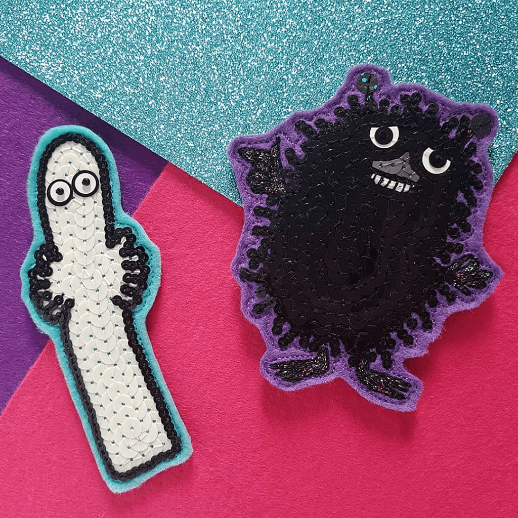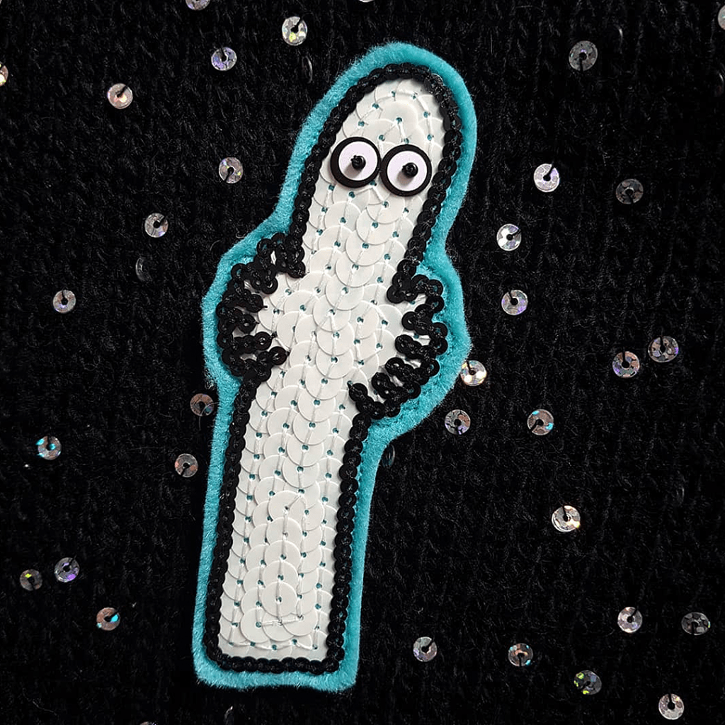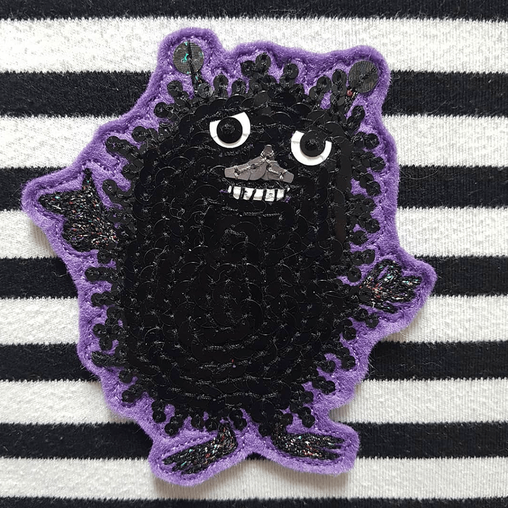 Hand sequinned patches of favourite Moomin characters, including a glow in the dark hattifattener!