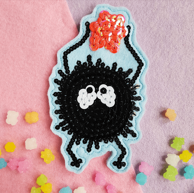 Hand sequinned patches of favourite Ghibli characters ranging from standard palm sized patches to full battle jacket back pieces!