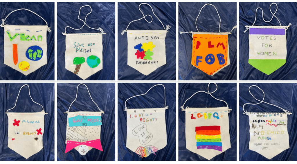 Planning and delivering creative, stitch based workshops for children aged 8-16. Part of the ‘Healthy Holidays’ initiative, which provides meals for children during school holidays. Workshops include digital illustration, craftivism, puppet making, zine making and mini stitching.